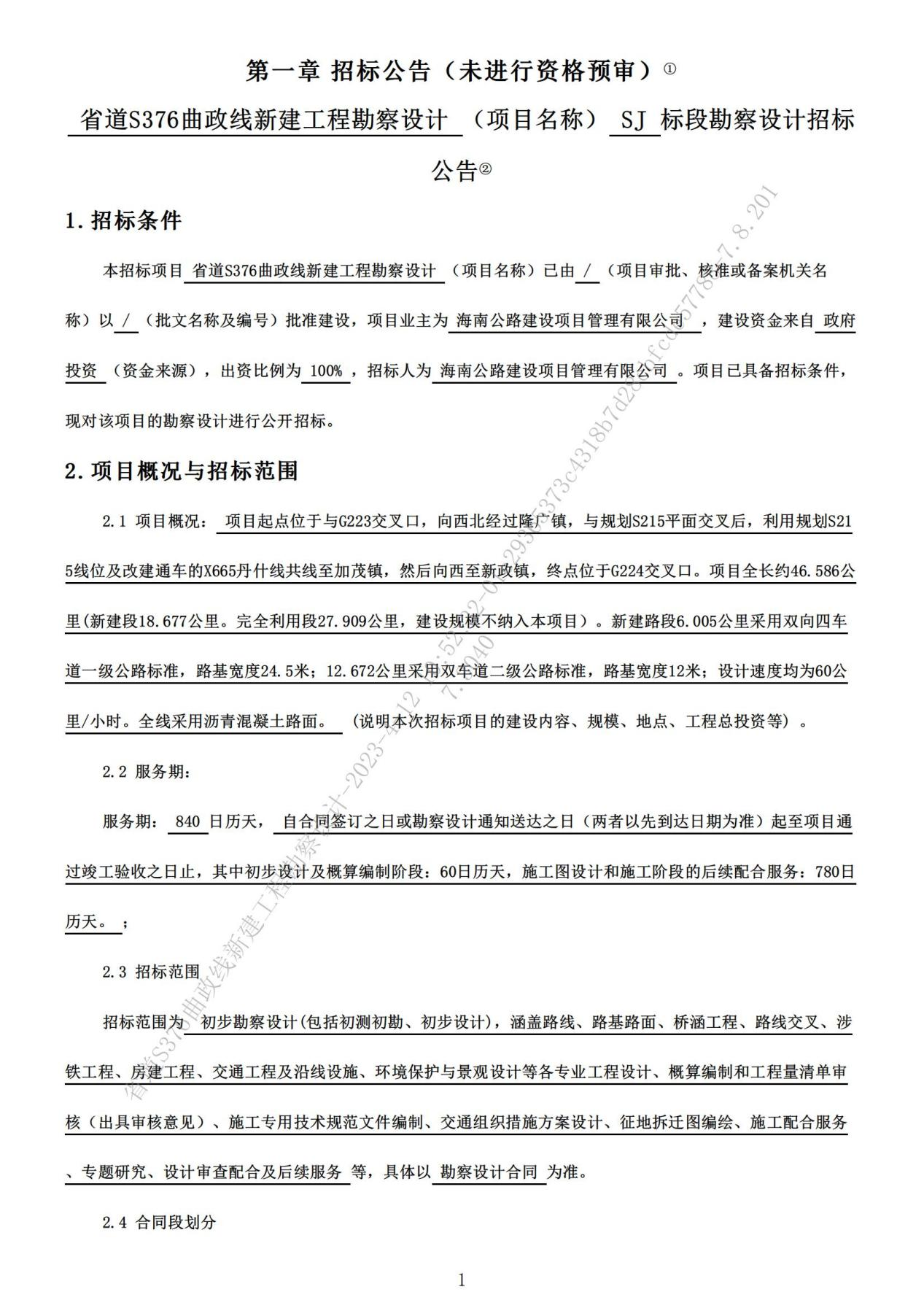 省道S376曲政線新建工程勘察設(shè)計(jì)招標(biāo)公告