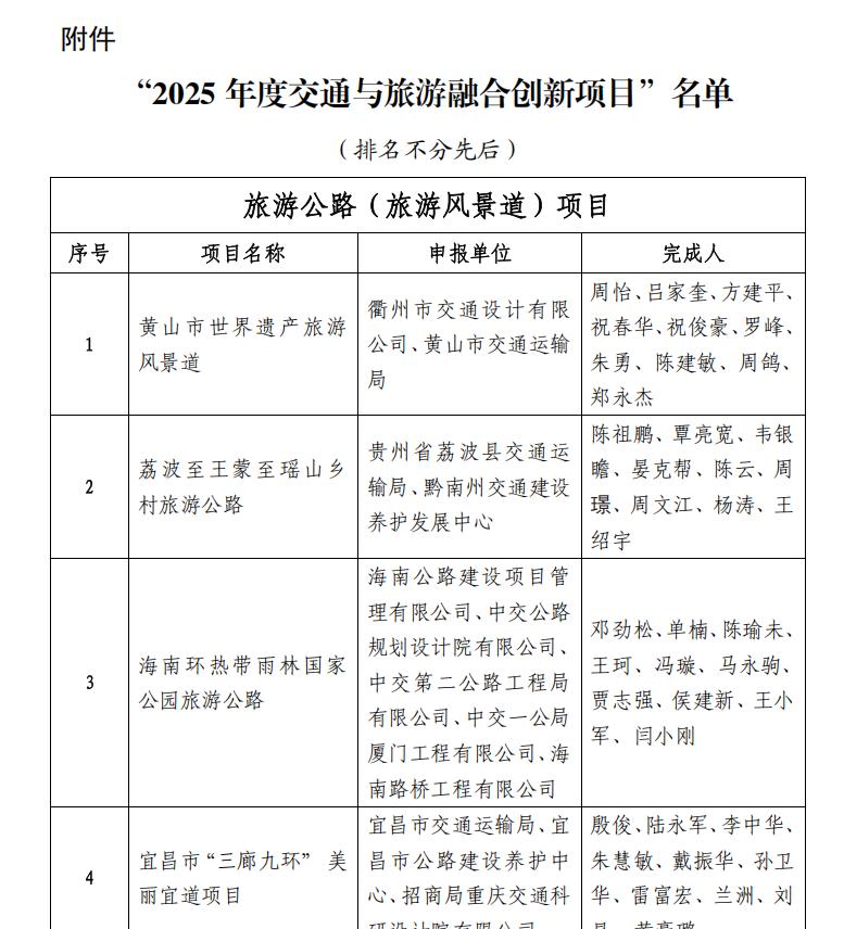 近日,中國公路學(xué)會(huì)正式發(fā)布“2025年度交通與旅游融合創(chuàng)新項(xiàng)目”名單,海南環(huán)熱帶雨林國家公園旅游公路從全國眾多項(xiàng)目中脫穎而出,成功入選!這一榮譽(yù)的獲得,是對(duì)海南省踐行“綠水青山就是金山銀山”發(fā)展理念、探索交通與旅游深度融合新路徑的認(rèn)可,同時(shí)也標(biāo)志著海南環(huán)熱旅游公路正式躋身全國旅游公路示范工程行列。
